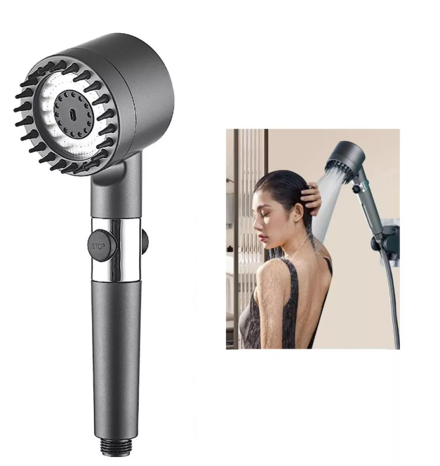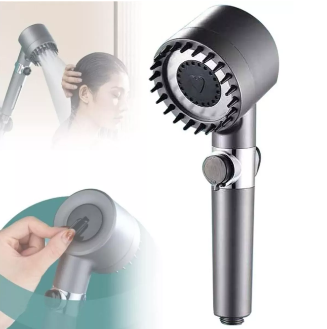. Disfruta de una experiencia de ducha de grado spa con nuestra ducha de mano de masaje, tiene 3 modos de pulverización y función de masaje para el cuero cabelludo. . La función de masaje ayuda a aliviar el estrés y la tensión del cuero cabelludo y el cuerpo, haciendo que tu hora del baño sea rejuvenecedora. . Este cabezal de ducha hecho con material ABS duradero, que puede durar mucho tiempo. . Este cabezal te ayudara a ahorrar más agua que una ducha normal. . La potente presión del agua es lo suficientemente suave para tu cuerpo cansado en cuestión de minutos. . Este cabezal de ducha de mano ofrece 3 modos de riego, que son pequeño, mediano y máx. Puede controlarlo fácilmente con el interruptor de palanca.