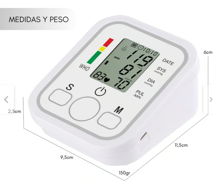 Toma Presión Digital Brazo Con Tensiometro Usa Pilas O Usb