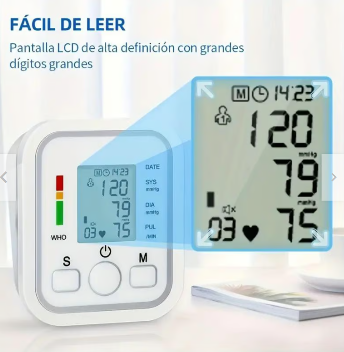 Diseñado inteligentemente para una lectura fácil y clara, el manguito de presión arterial está equipado con una gran pantalla LCD para lecturas más precisas en 45 segundos. El Monitor automático de presión arterial tiene tecnología de medición avanzada para proporcionarle las lecturas más precisas. Conveniente para realizar un seguimiento de su salud diaria.